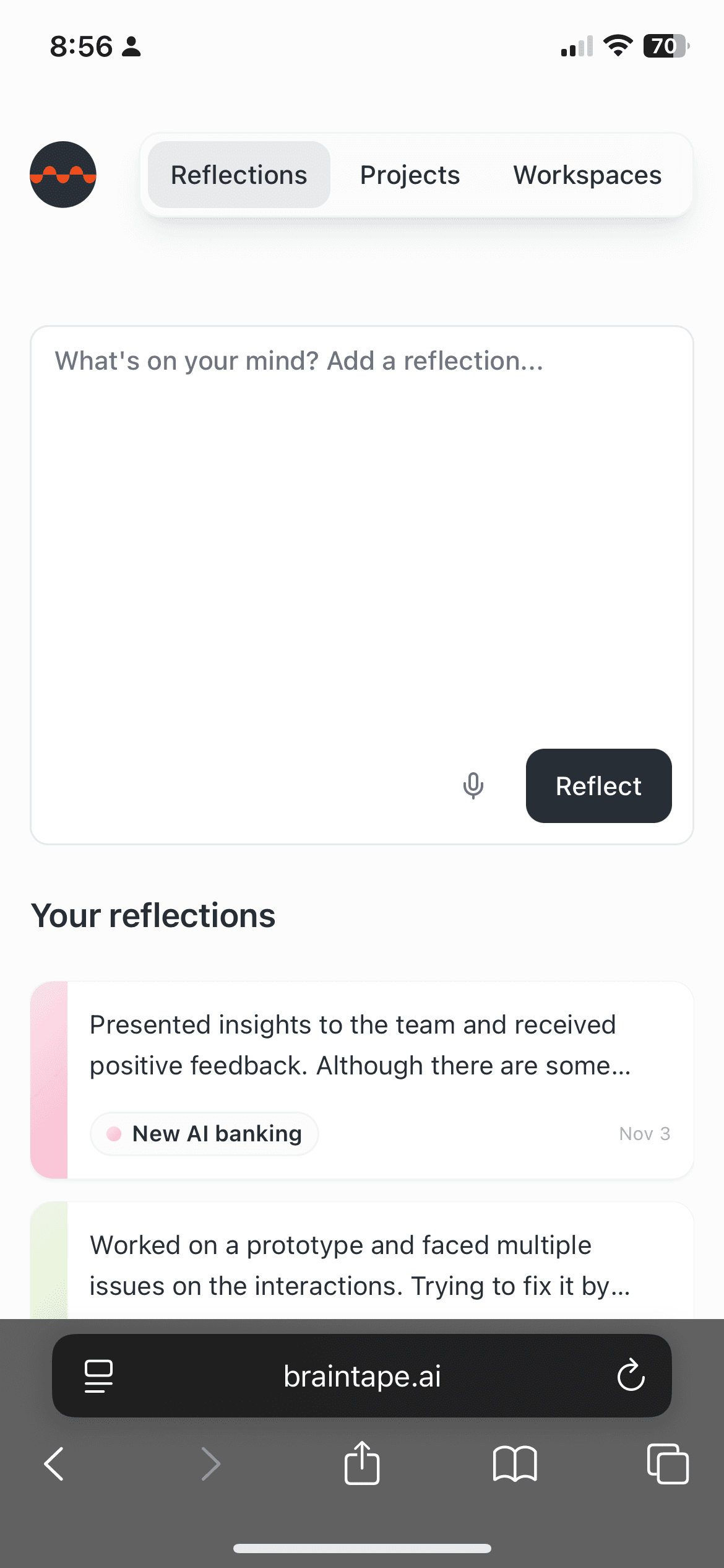 Braintape captures your raw reflections, tracks your productivity alongside your output, and transforms scattered moments into compelling narratives, all without disrupting your flow.